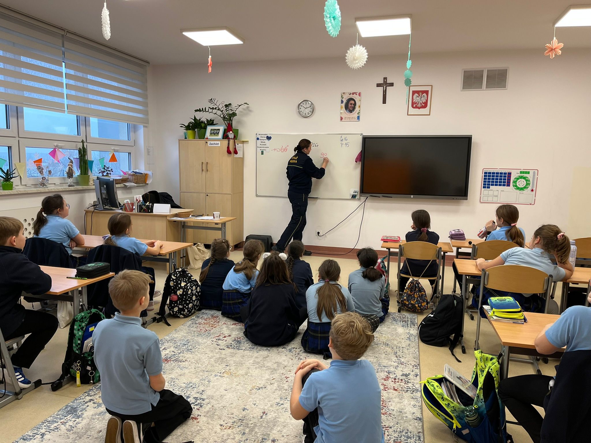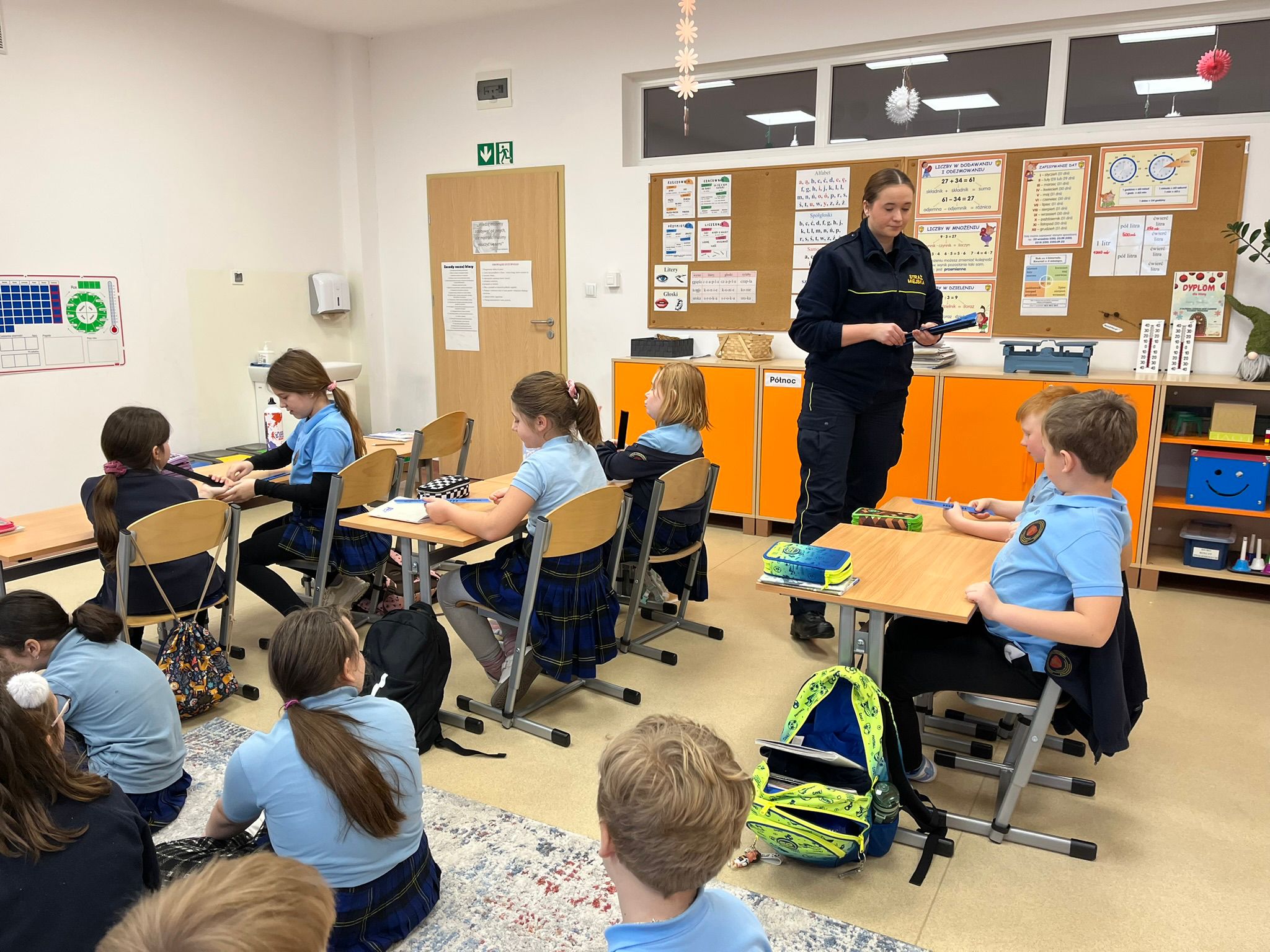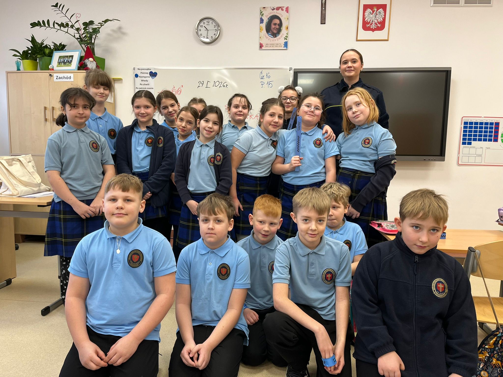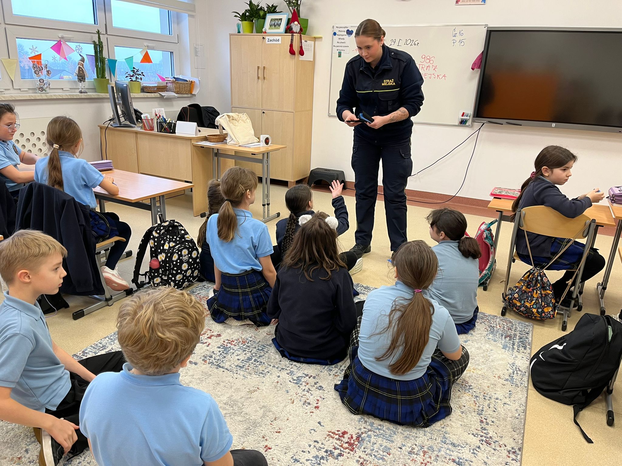 Dnia 29 stycznia 2026 r. uczniowie kl. 1–3 uczestniczyli w zajęciach profilaktycznych z funkcjonariuszką Straży Miejskiej, Panią Wiktorią Urban, nt. Bezpieczne ferie. W trakcie zajęć poznawali zagrożenia związane z zimowym wypoczynkiem oraz właściwe zachowania, aby zagrożeń tych uniknąć. Uczyli się postępowania w sytuacjach zagubienia lub utraty kontaktu z opiekunem, rozwijali świadomość potrzeby odpowiedniego ubioru zimą, utrwalili numery alarmowe. Przypomnieli sobie również o konieczności zaopatrzenia się w odblaski podczas zimowych spacerów. To były bardzo pouczające zajęcia, które z pewnością przyczynią się do udanych i bezpiecznych ferii każdego ucznia naszej szkoły