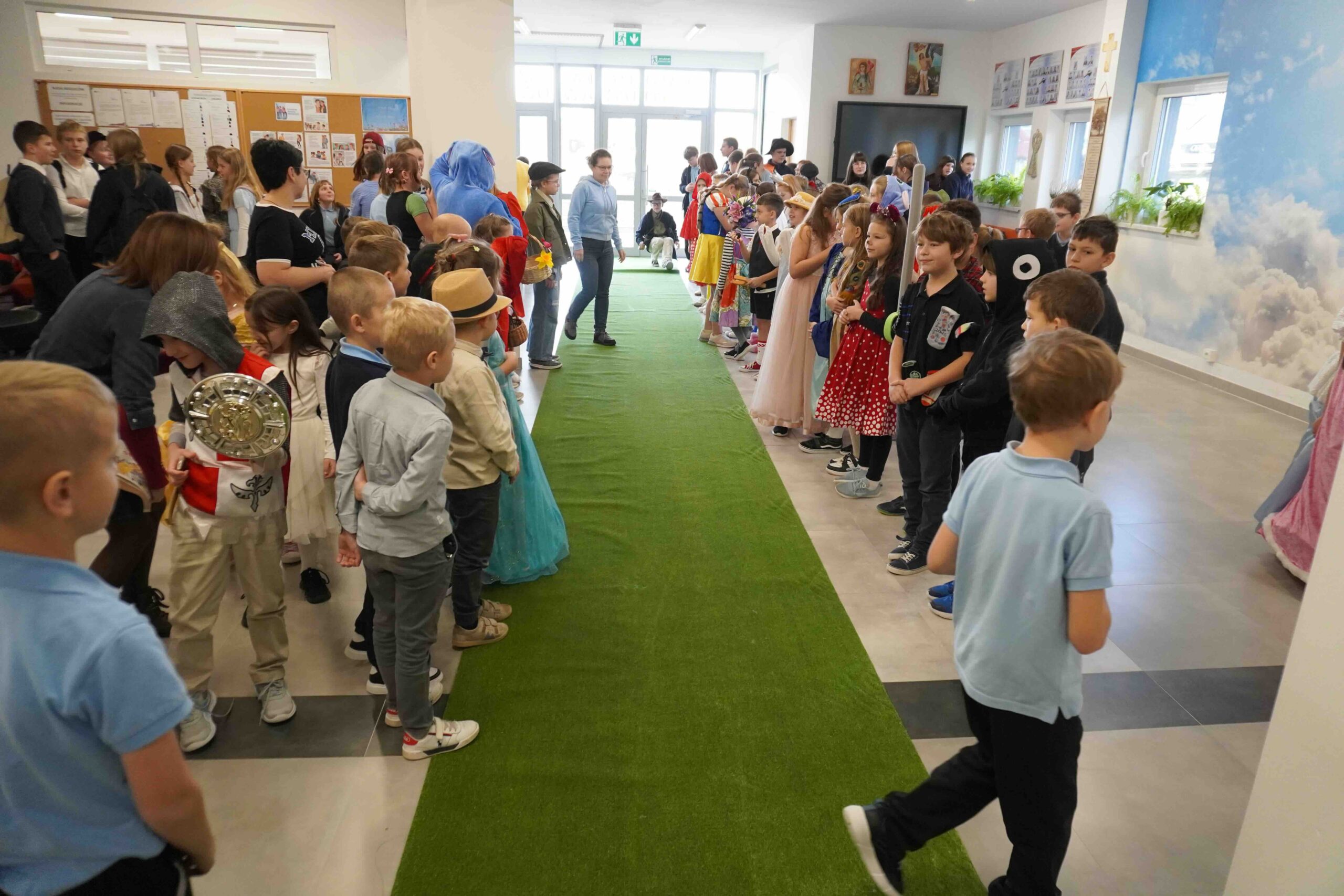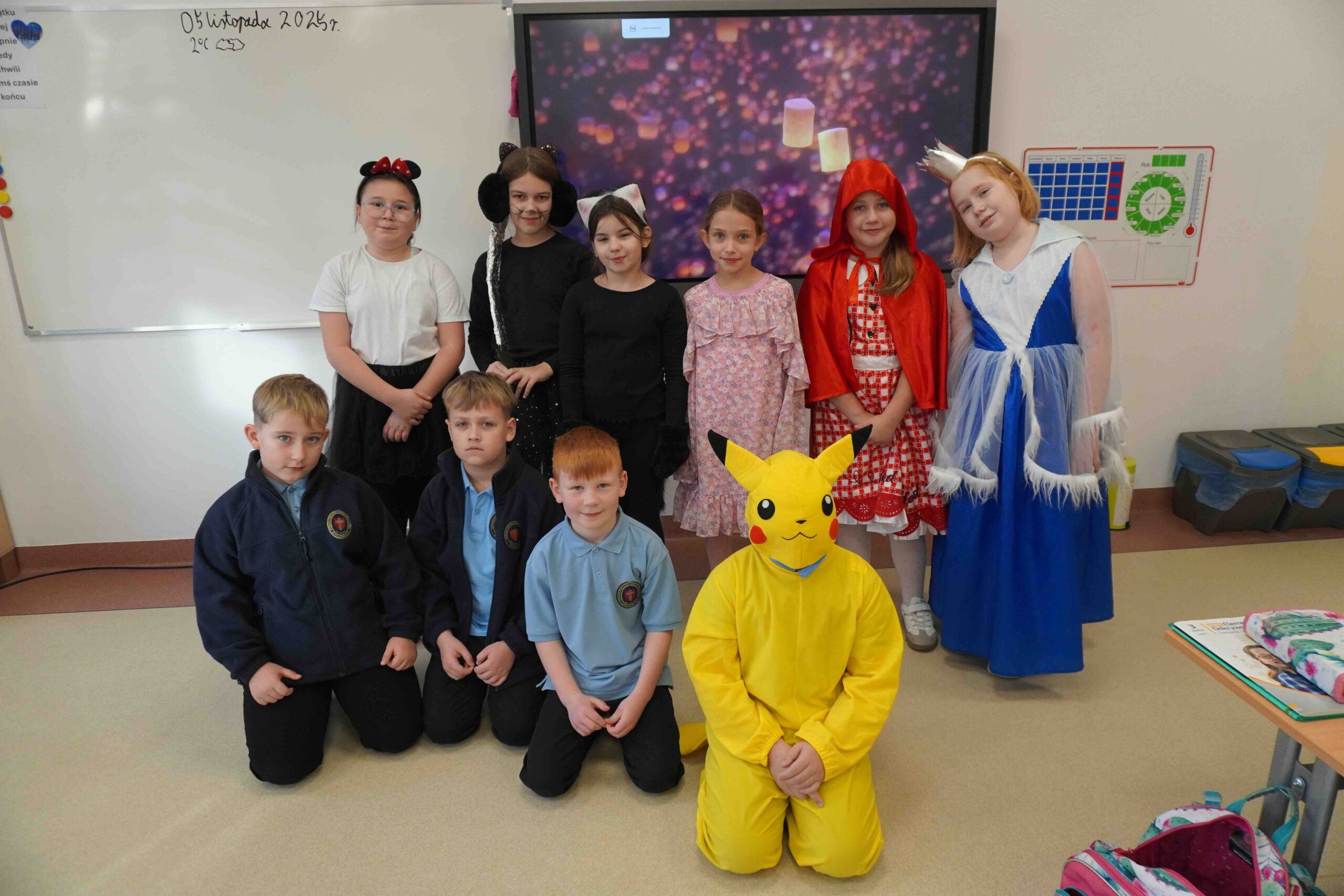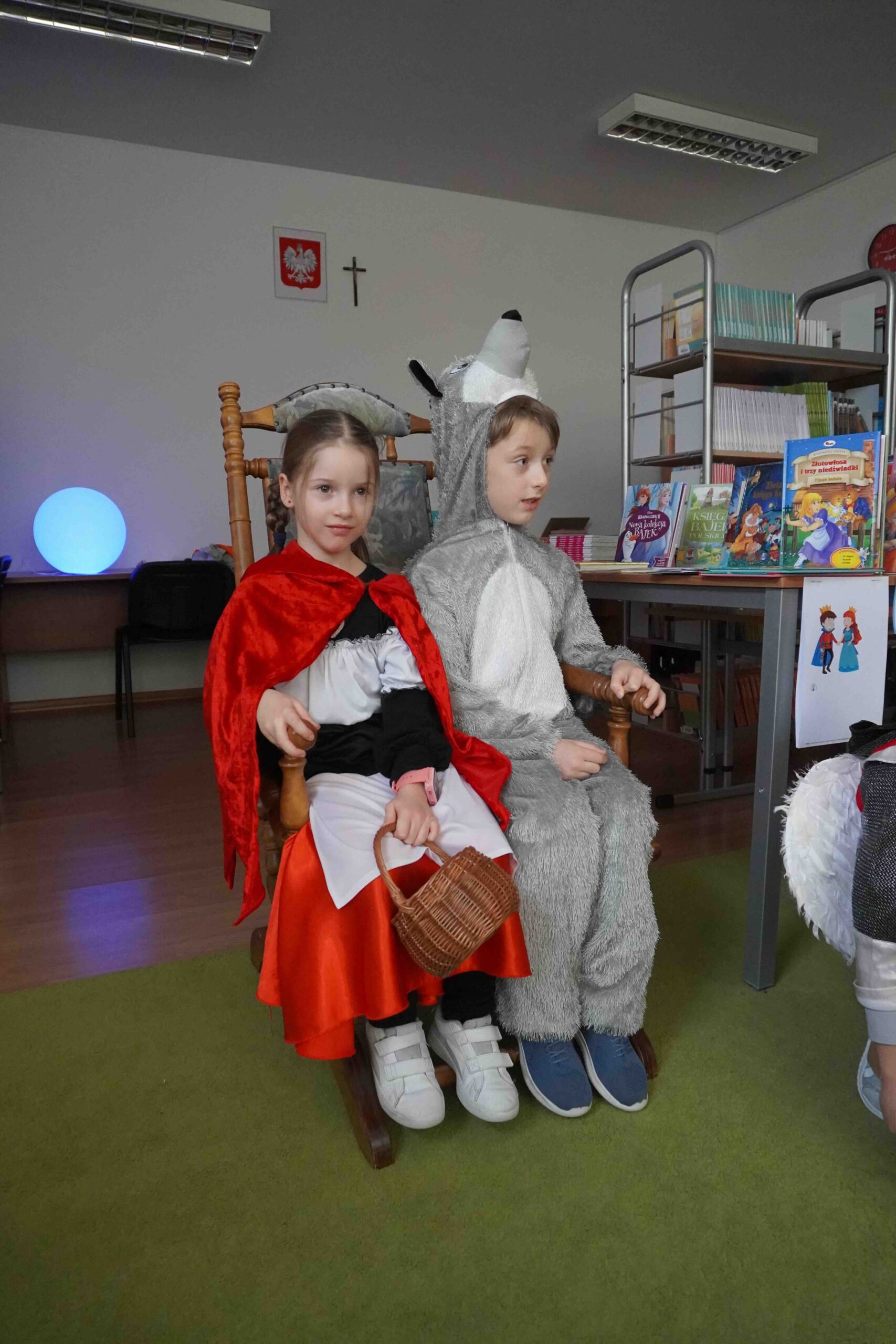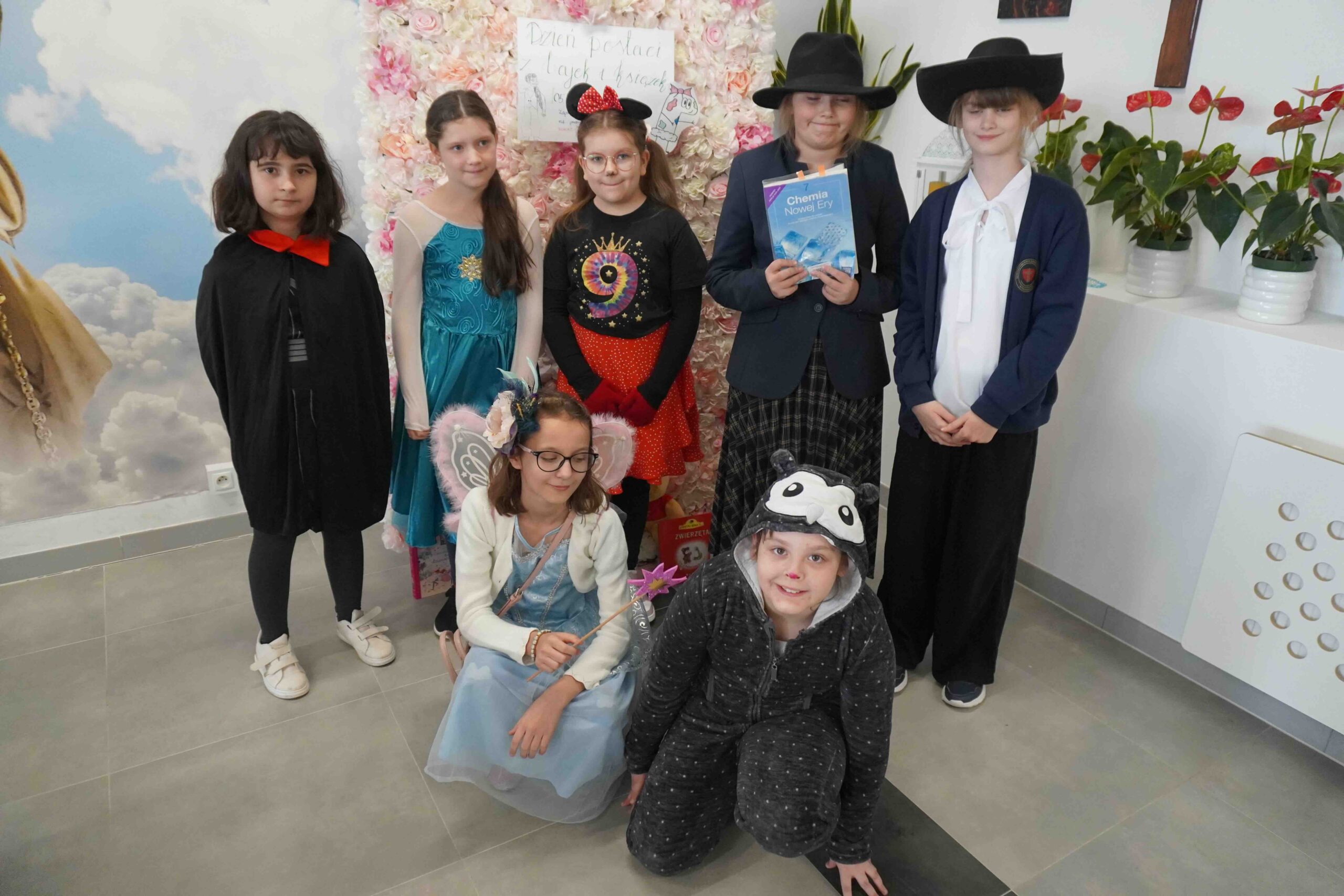 W naszej szkole samorząd zorganizował Dzień Postaci z Bajek i Książek. Uczniowie mogli przebrać się za ulubioną postać z bajki oraz lektur szkolnych. Dla odważnych był również pokaz strojów na zielonym dywanie przy bajkowych melodiach. Dla chętnych uczniów przygotowany był kącik z bajkowymi kolorowankami, rebusami oraz układankami. Najmłodsze dzieci odwiedziły bibliotekę, słuchały baśni, odpowiadały na wierszowane zagadki. Bajkowe postacie zawitały także do szkolnej świetlicy. Podczas zajęć uczniowie grali w bajkowe gry planszowe, lepili z plasteliny ulubionych bohaterów oraz obejrzeli Przygody Bolka i Lolka. Był to kolorowy i bajeczny dzień dla szkoły.