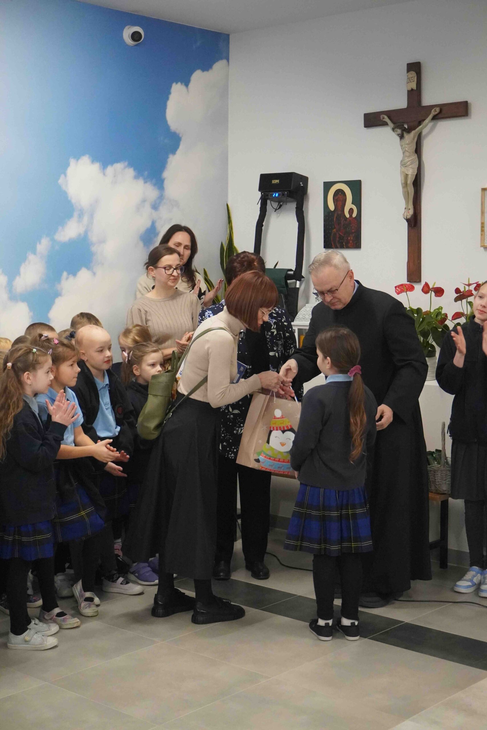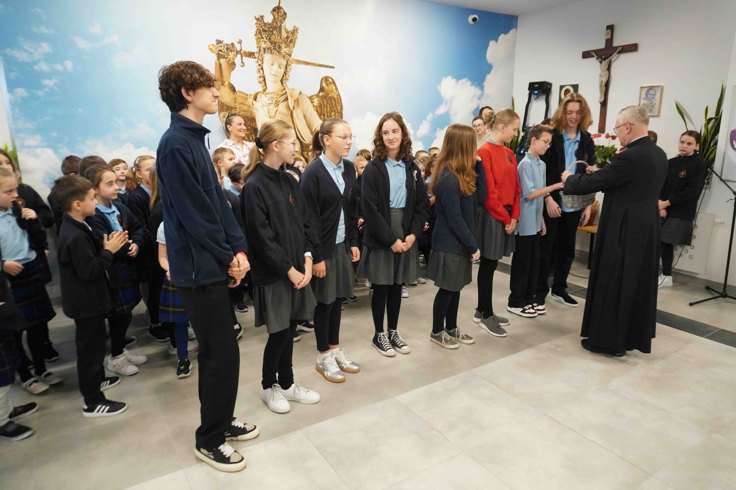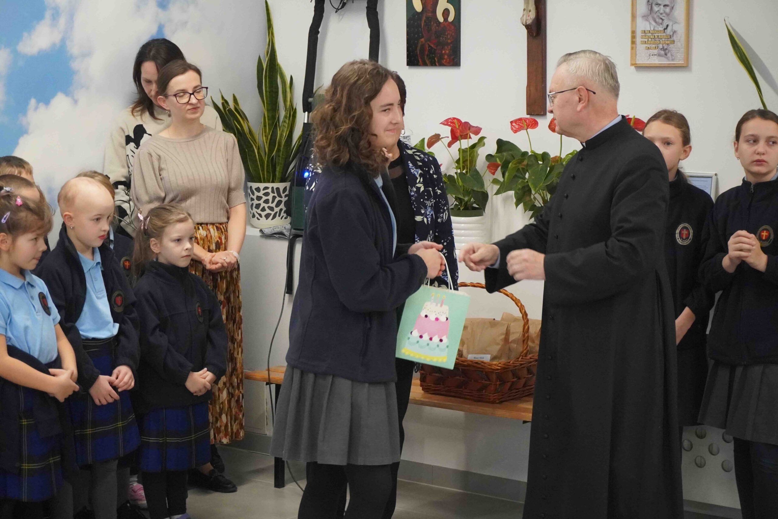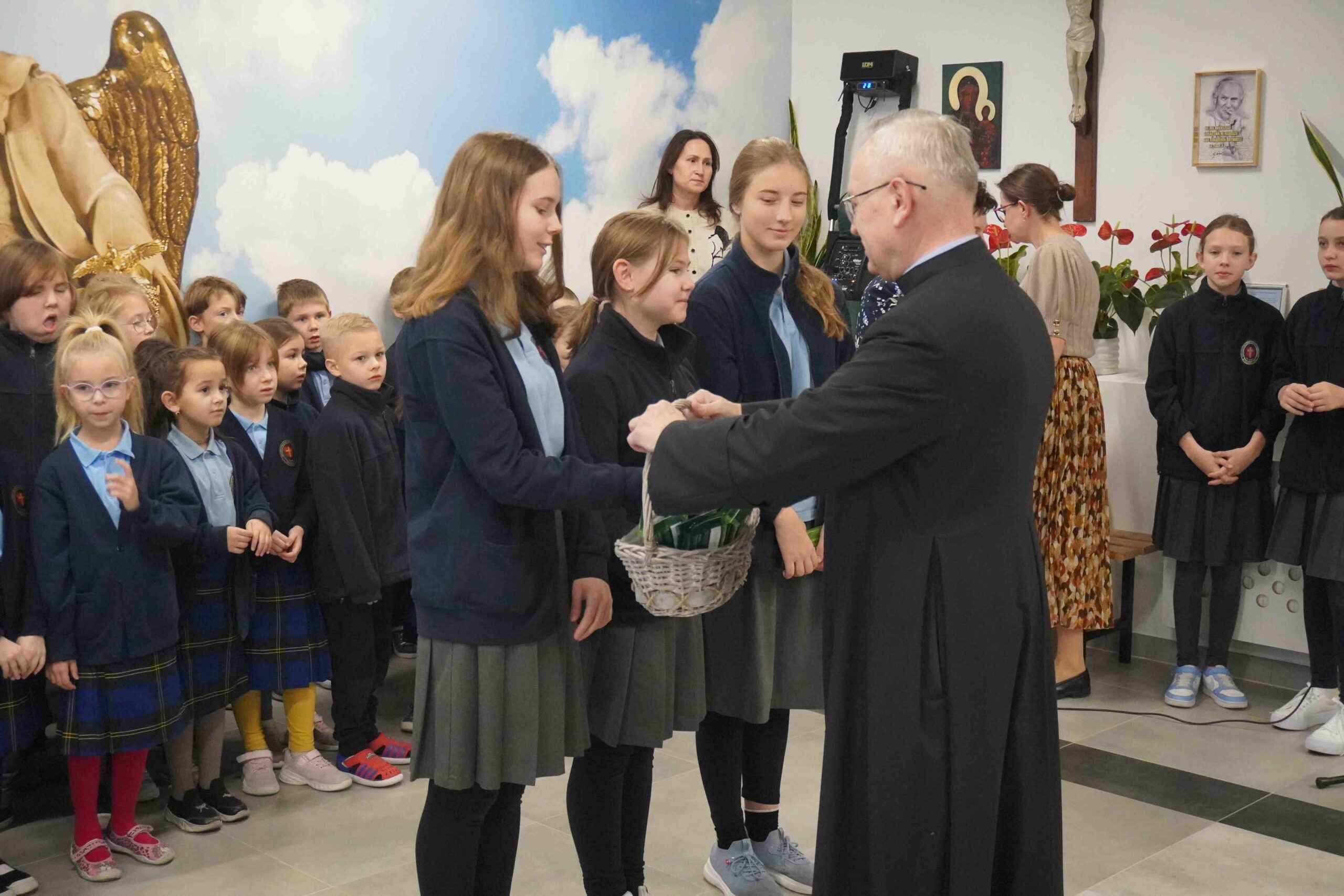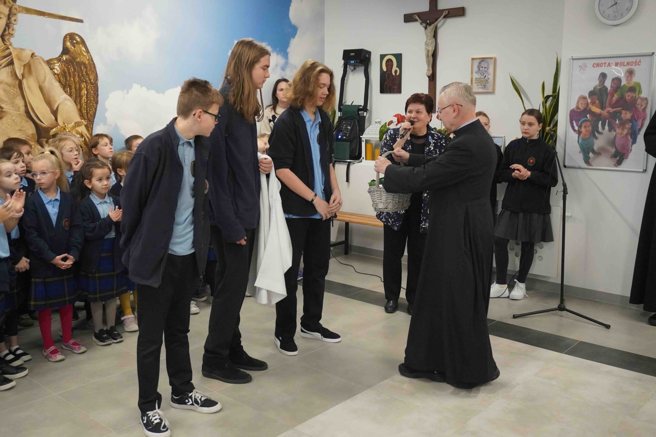 Nasi uczniowie zawsze chętnie i z ogromną pasją włączają sie w różnego rodzaju inicjatywy związane z działalnością szkoły. Nie inaczej było w przypadku przygotowań do nadania szkole imienia św. Jana Pawła II. Zarówno młodsi jak i starsi z pełnym zaangażowaniem podjęli się uświetnienia tego wydarzenia, dzieląc sie sowimi talentami z zebranymi gośćmi. W podziękowaniu za tak aktywny udział we wspólnym świętowaniu dyrektor szkoły pani Krystyna Ornatowska wraz z ks. proboszczem Jarosławem Święcickim postanowili obdarować uczniów słodkimi upominkami. Był to wyraz uznania za bezinteresowną, ochoczą pomoc na rzecz rozsławienia imienia naszej szkoły.