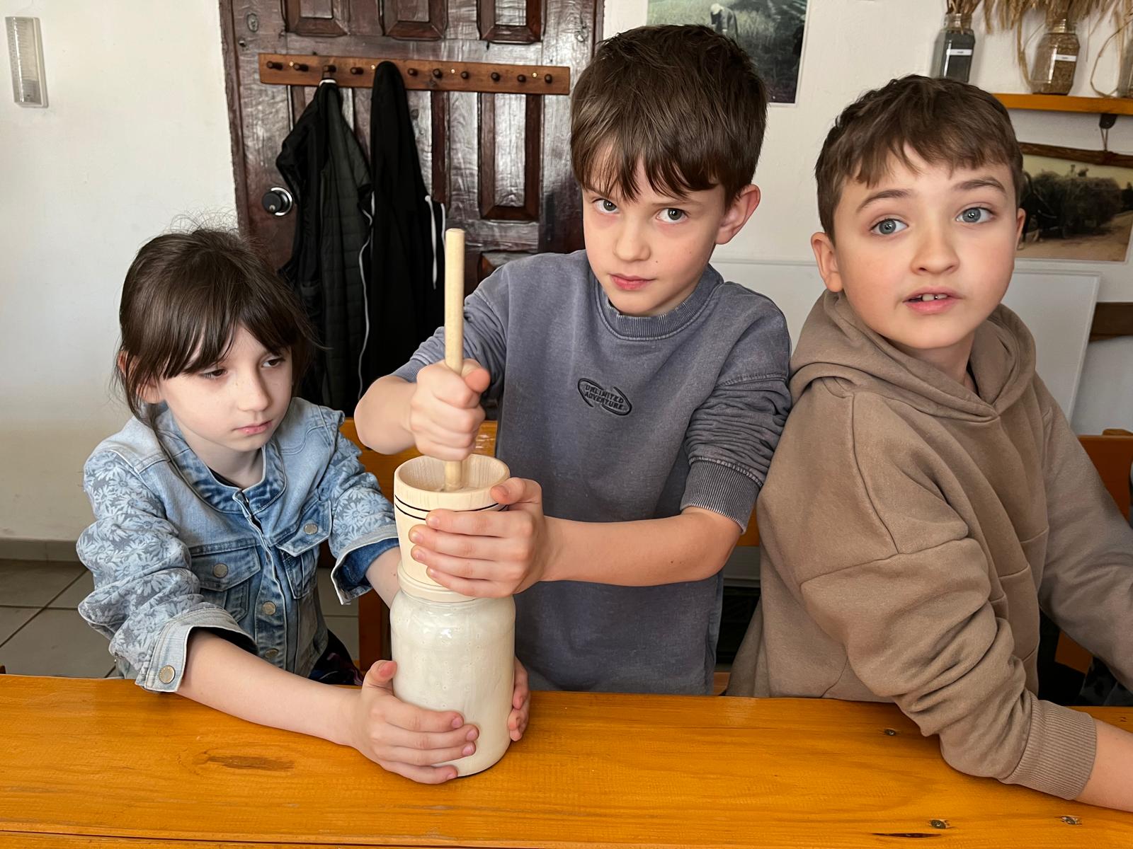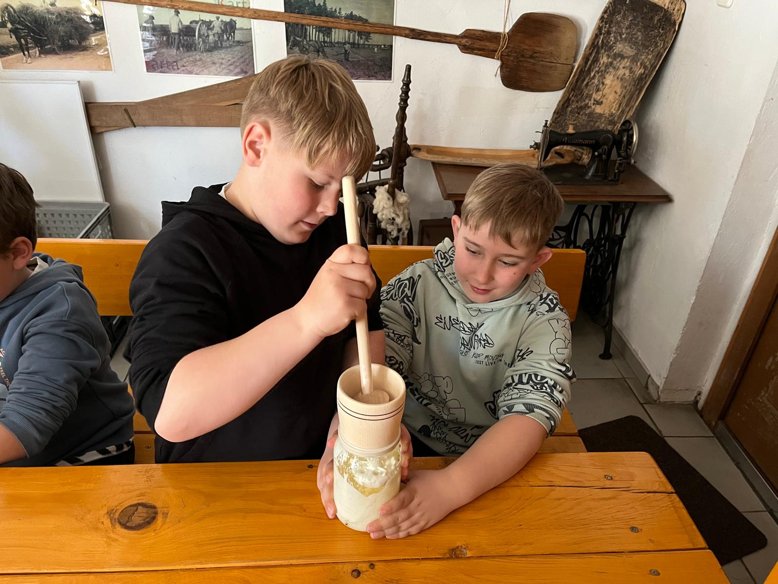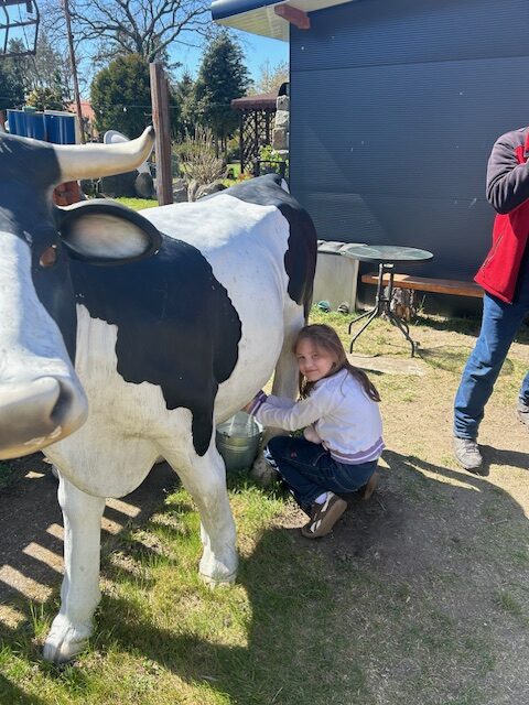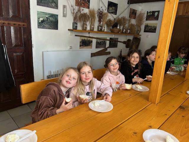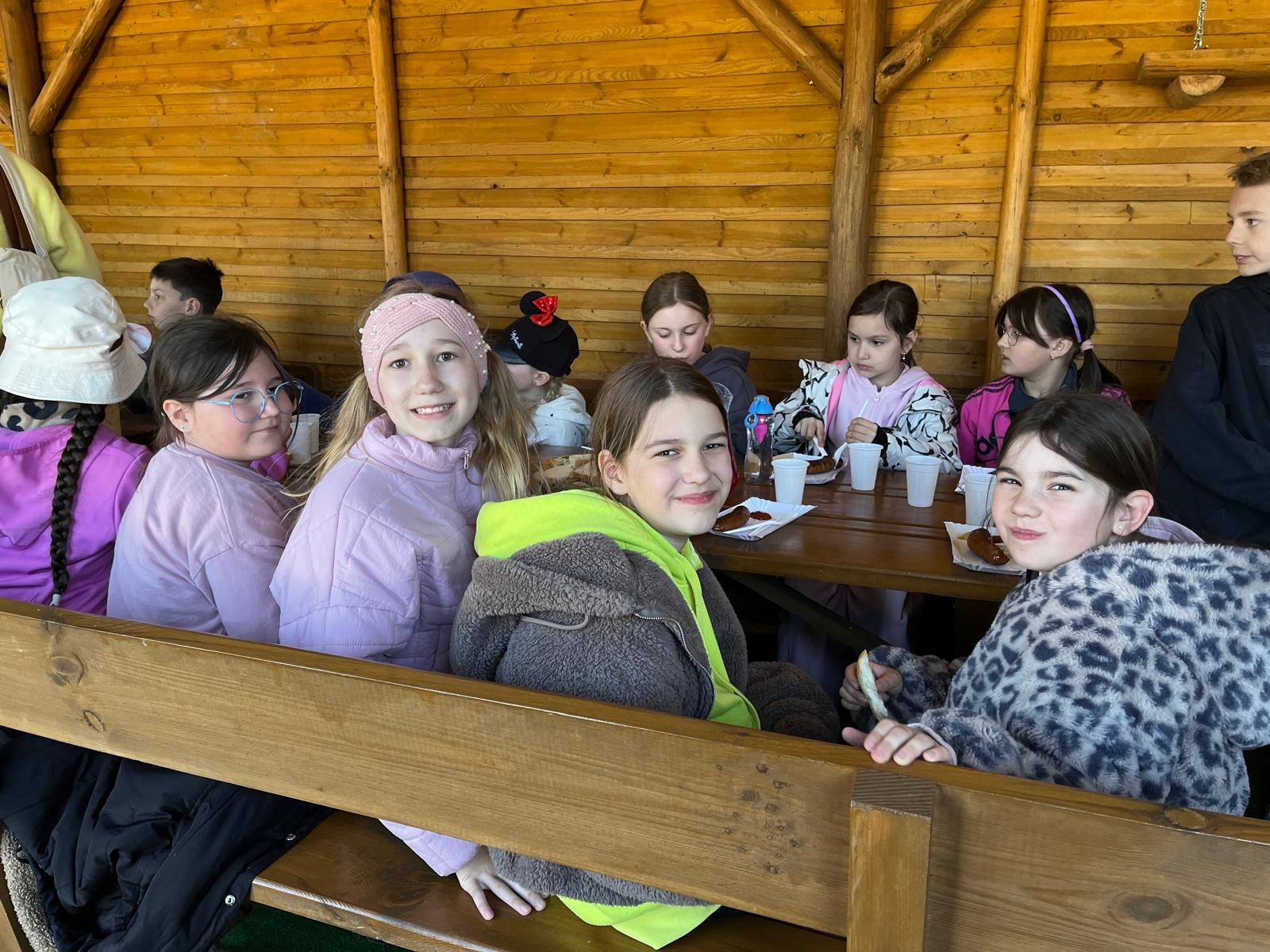 Dnia 28 kwietnia 2026 r. uczniowie klas 1–3 uczestniczyli w wycieczce do gospodarstwa agroturystycznego „Świerkowe Zacisze” w Jakubowie Lubińskim. W trakcie zajęć uczyli się doić krowę, poznawali dawny sprzęt gospodarstwa domowego, samodzielnie wyrabiali w masielniczkach masło widząc na bieżąco stopień jego wyrobienia, przygotowywali lemoniadę, by później móc z apetytem skosztować swoje wyroby. Po zajęciach warsztatowych wzięli udział w zajęciach rekreacyjnych na świeżym powietrzu. Wycieczka zakończyła się wspólnym grillem. Czas spędzony w miłej atmosferze pozwolił wszystkim w pełni się zrelaksować.