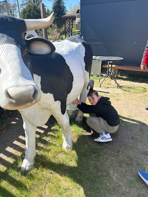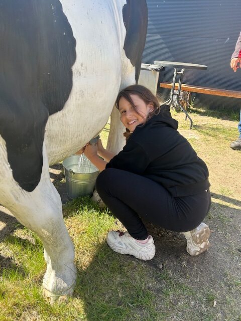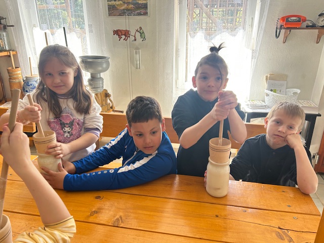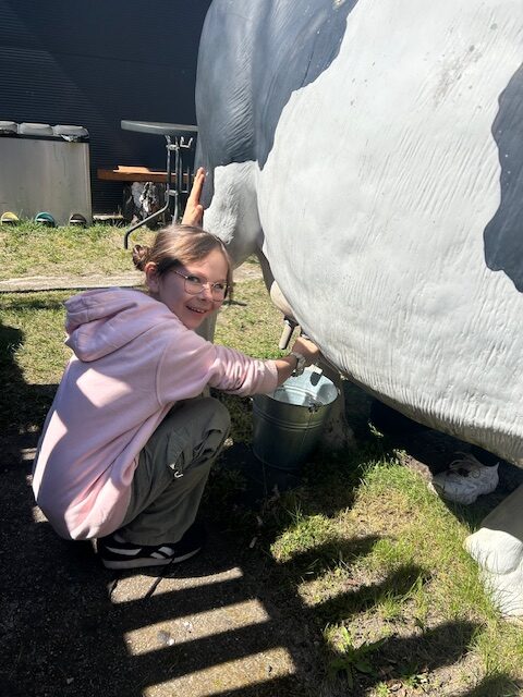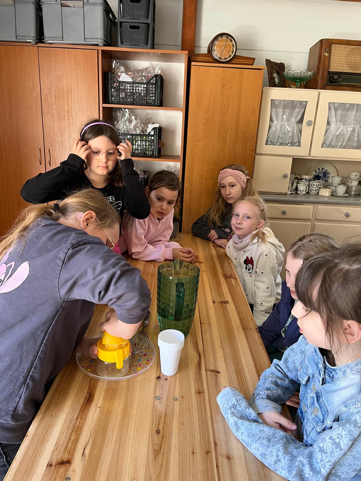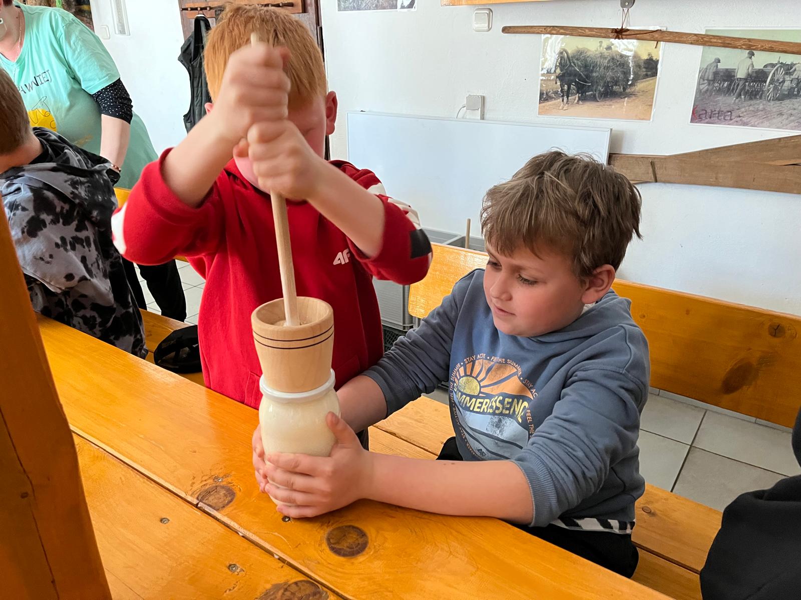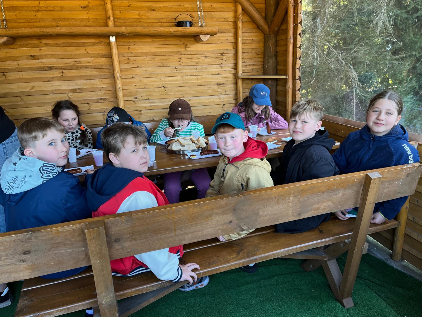 Dnia 28 kwietnia 2026 r. uczniowie klas 1–3 uczestniczyli w wycieczce do gospodarstwa agroturystycznego „Świerkowe Zacisze” w Jakubowie Lubińskim. W trakcie zajęć uczyli się doić krowę, poznawali dawny sprzęt gospodarstwa domowego, samodzielnie wyrabiali w masielniczkach masło widząc na bieżąco stopień jego wyrobienia, przygotowywali lemoniadę, by później móc z apetytem skosztować swoje wyroby. Po zajęciach warsztatowych wzięli udział w zajęciach rekreacyjnych na świeżym powietrzu. Wycieczka zakończyła się wspólnym grillem. Czas spędzony w miłej atmosferze pozwolił wszystkim w pełni się zrelaksować.