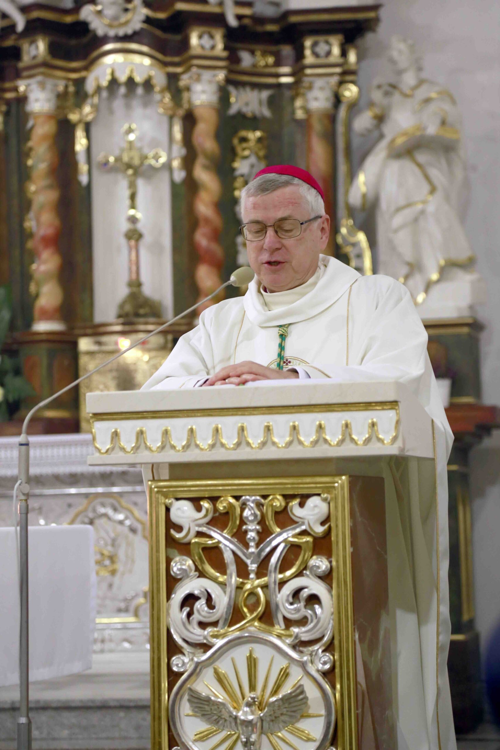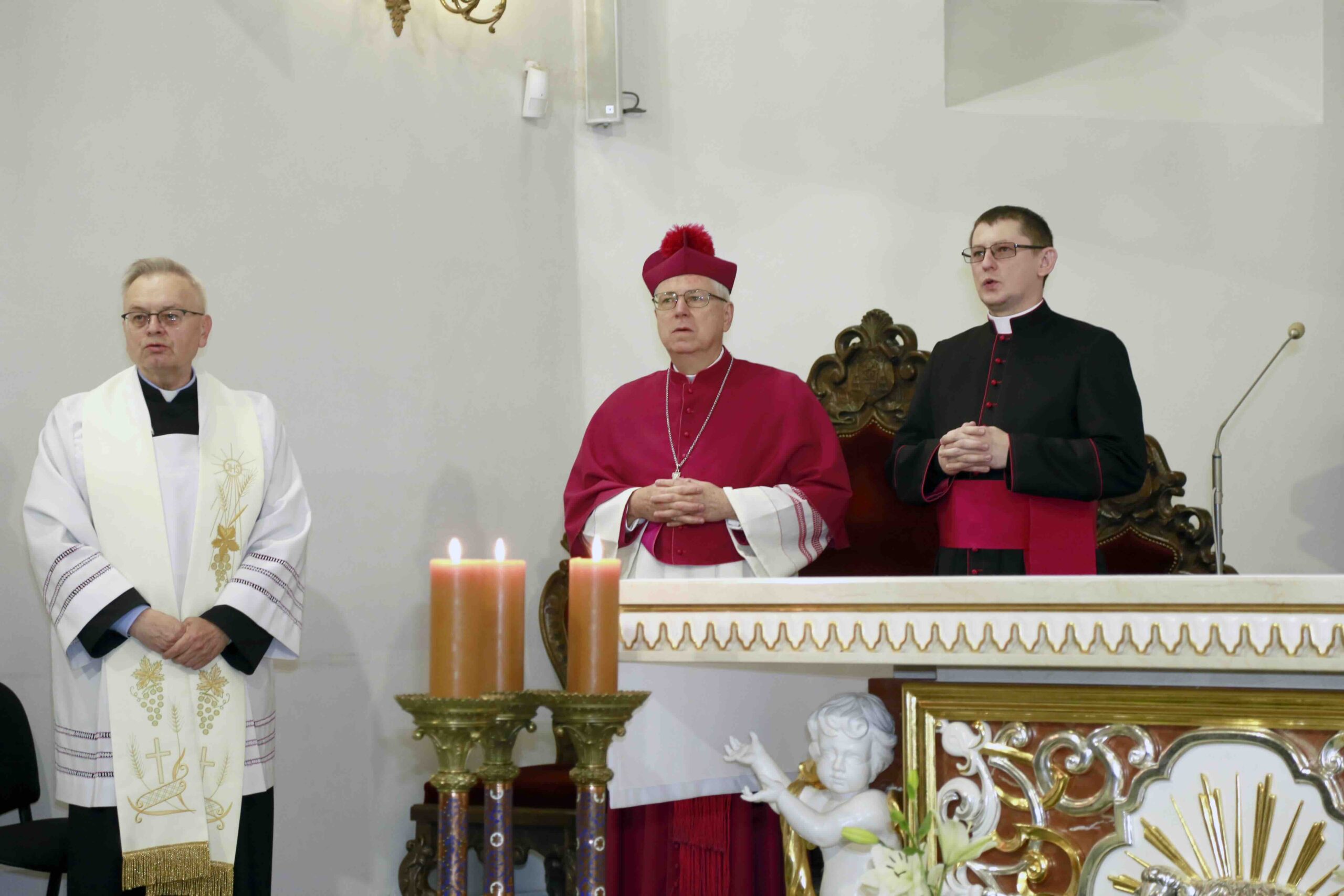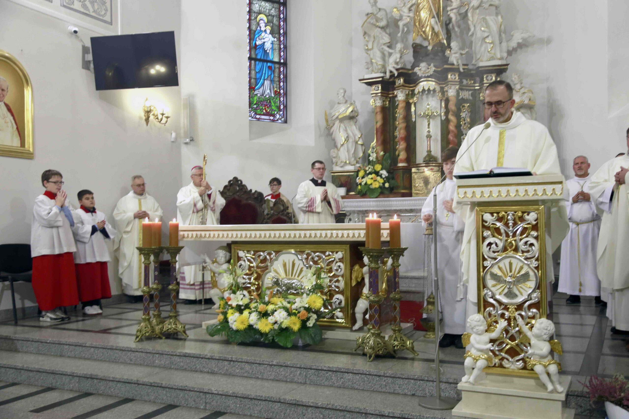 Uroczystości rozpoczęły się Eucharystią w kościele pw. św. Michała Archanioła w Polkowicach, której przewodniczył Biskup Legnicki Andrzej Siemieniewski. Podczas Mszy Świętej Ksiądz Biskup dokonał poświęcenia sztandaru szkoły, a w homilii przypomniał, że św. Jan Paweł II jest dla młodych ludzi wzorem człowieka wiary, odwagi i miłości do Boga oraz drugiego człowieka.