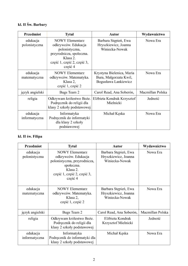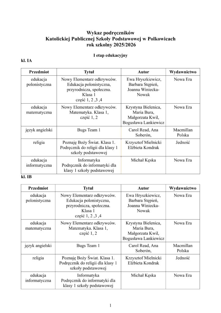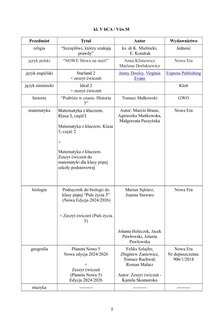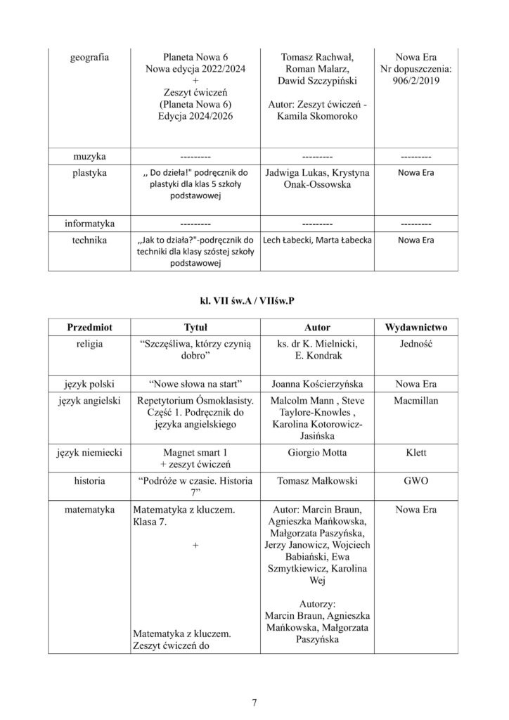 WYKAZ PODRĘCZNIKÓW